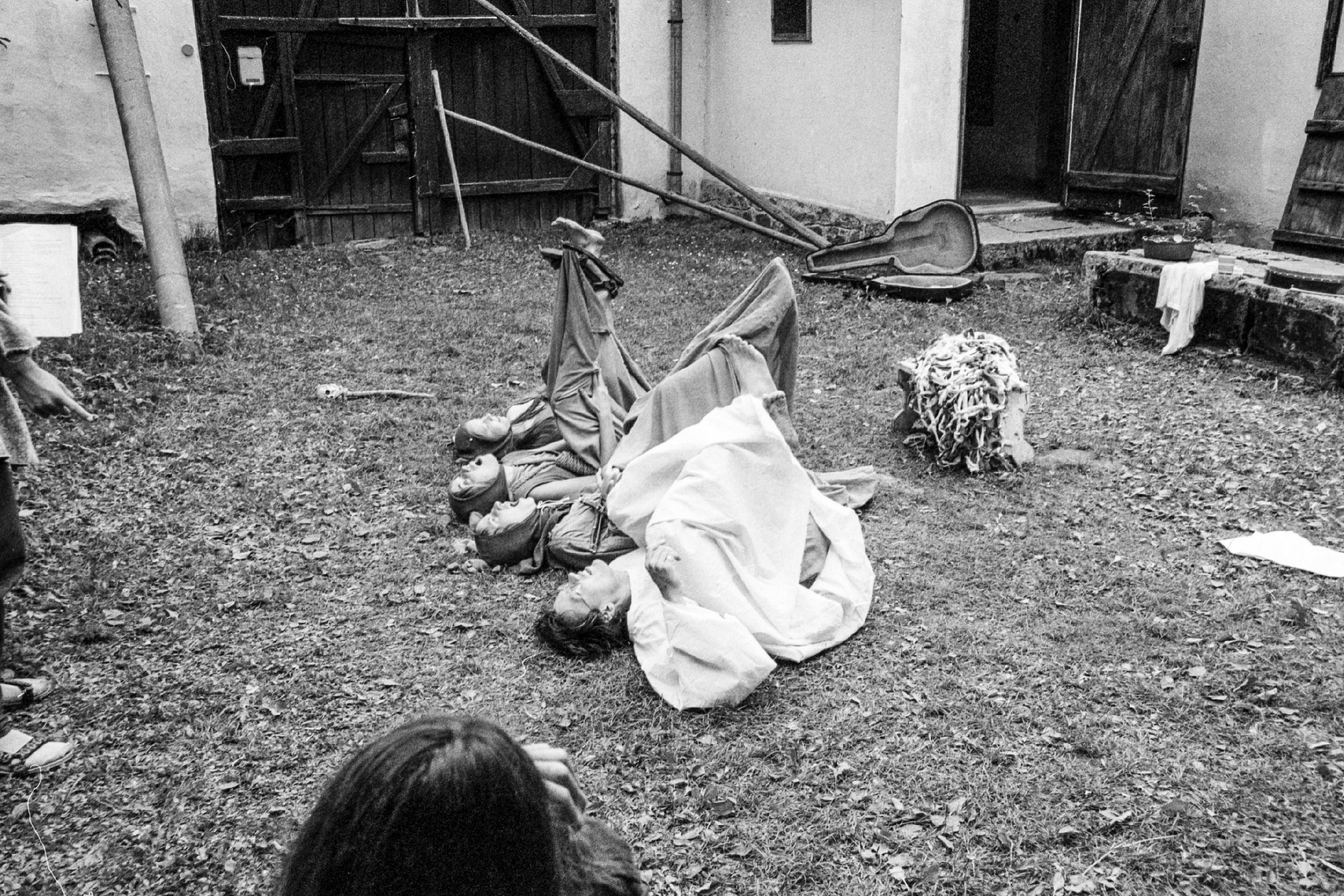 Snímky z týdenní přípravy divadelního představení Loď bláznů na letním sídle Lucky Černické mezi rybníky poblíž Majdalény (s malým odskokem do Českého Krumlova).